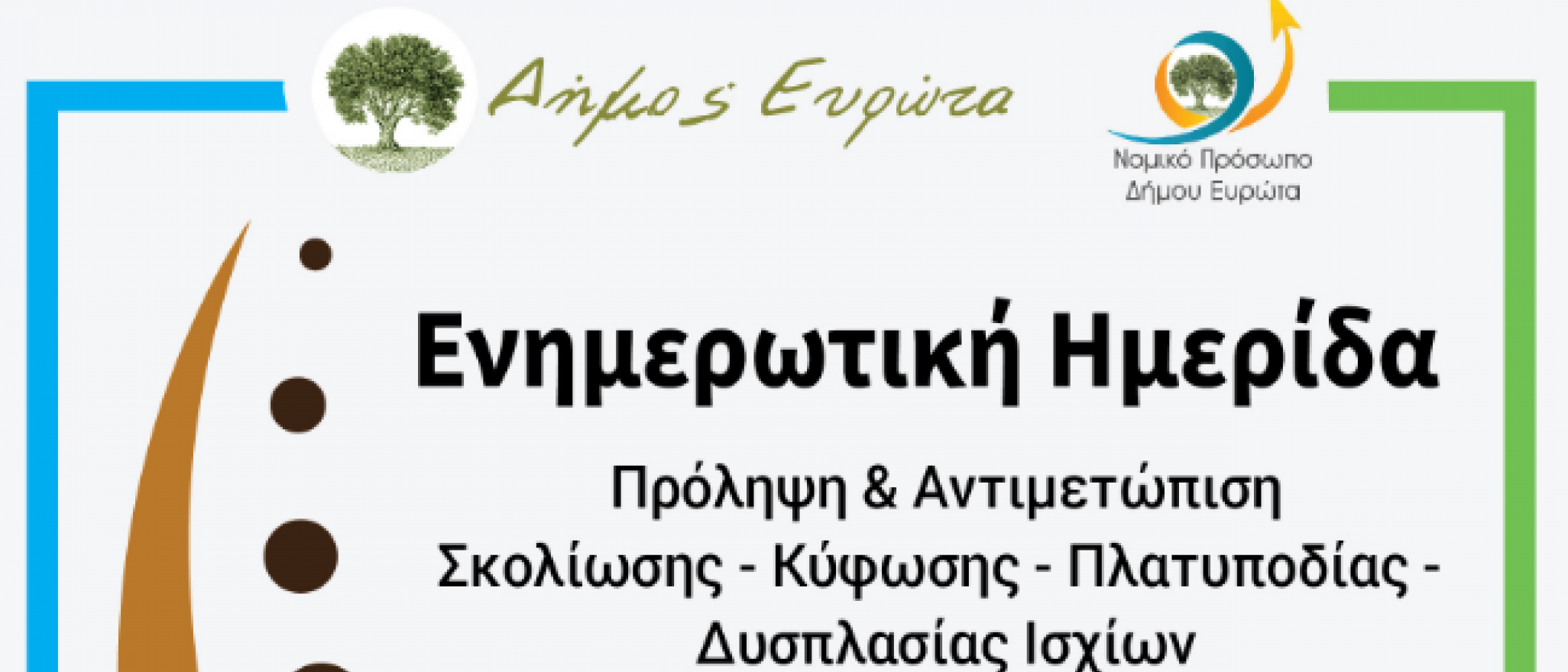 Στο πλαίσιο της κοινωνικής ευαισθησίας και με γνώμονα την πρόληψη παθήσεων και δυσπλασιών ορθοπαιδικής φύσεως στα παιδιά, το ΝΠΔΔ «Νικηφόρος Βρεττάκος» Δήμου Ευρώτα διοργανώνει το Σάββατο 1 Οκτωβρίου, στο Πνευματικό Κέντρο Σκάλας στις 13:00,ενημερωτική ημερίδα με θέμα: