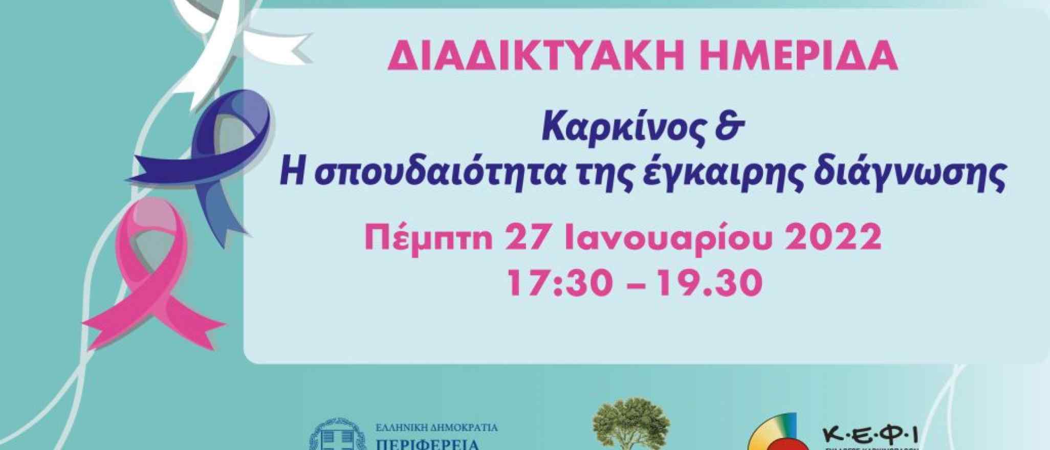 Η Περιφέρεια Πελοποννήσου, ο Δήμος Ευρώτα και ο Σύλλογος Καρκινοπαθών Κ.Ε.Φ.Ι. Αθηνών διοργανώνουν διαδικτυακή ημερίδα με θέμα