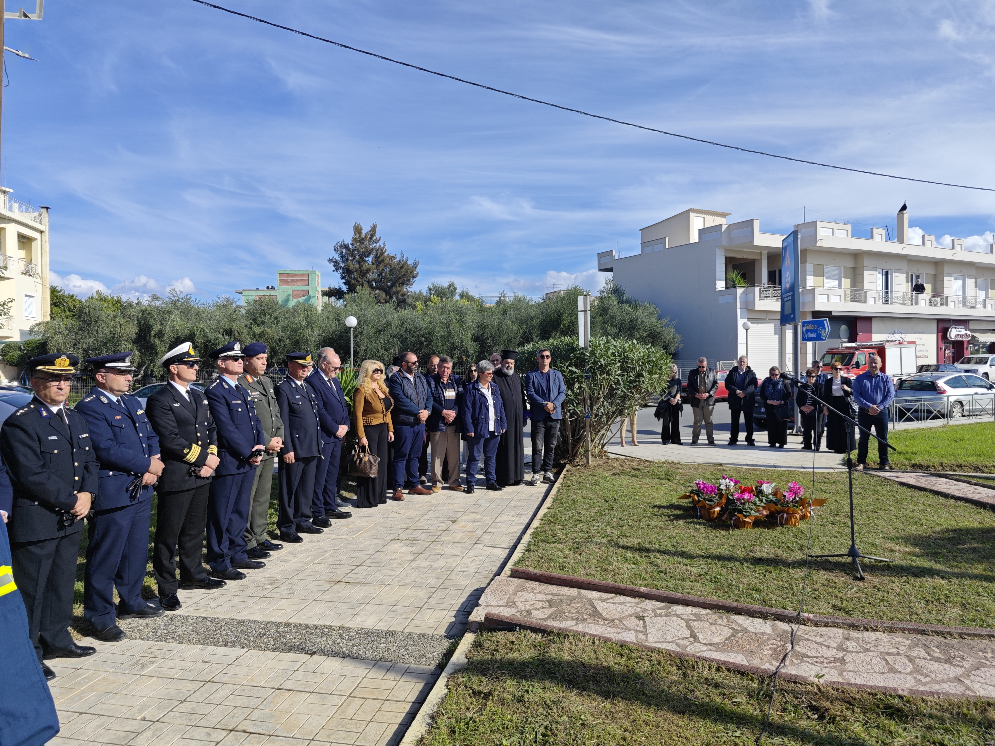 Στο μνημόσυνο παρέστησαν ο Αναπληρωτής Διοικητής Πυροσβεστικών Υπηρεσιών Λακωνίας, Αντιπύραρχος Διαμαντής Τσολομίτης, ο Δήμαρχος Ευρώτα κ. Δήμος Βέρδος, οι Αντιδήμαρχοι, η Πρόεδρος του Δημοτικού Συμβουλίου, ο Πρόεδρος της Δημοτικής Κοινότητας Σκάλας, ο Ανώτερος Στρατιωτικός Διοικητής Λακωνίας, Ταξίαρχος Ζορμπάς Γεώργιος, ο Αστυνομικός Διευθυντής Λακωνίας Σταματόπουλος Κωνσταντίνος, ο Διοικητής του Λιμεναρχείου Γυθείου, Αντιπλοίαρχος Μοτσάκος Θεόδωρος οι Διοικητές των Αστυνομικών Τμημάτων Ευρώτα και Γυθείου, , καθώς και η Αντιδήμαρχος του Δήμου Σπάρτης κα Αδαμαντία Βαγιακάκου, συγγενείς των πεσόντων πυροσβεστών, εθελοντές και πολίτες.