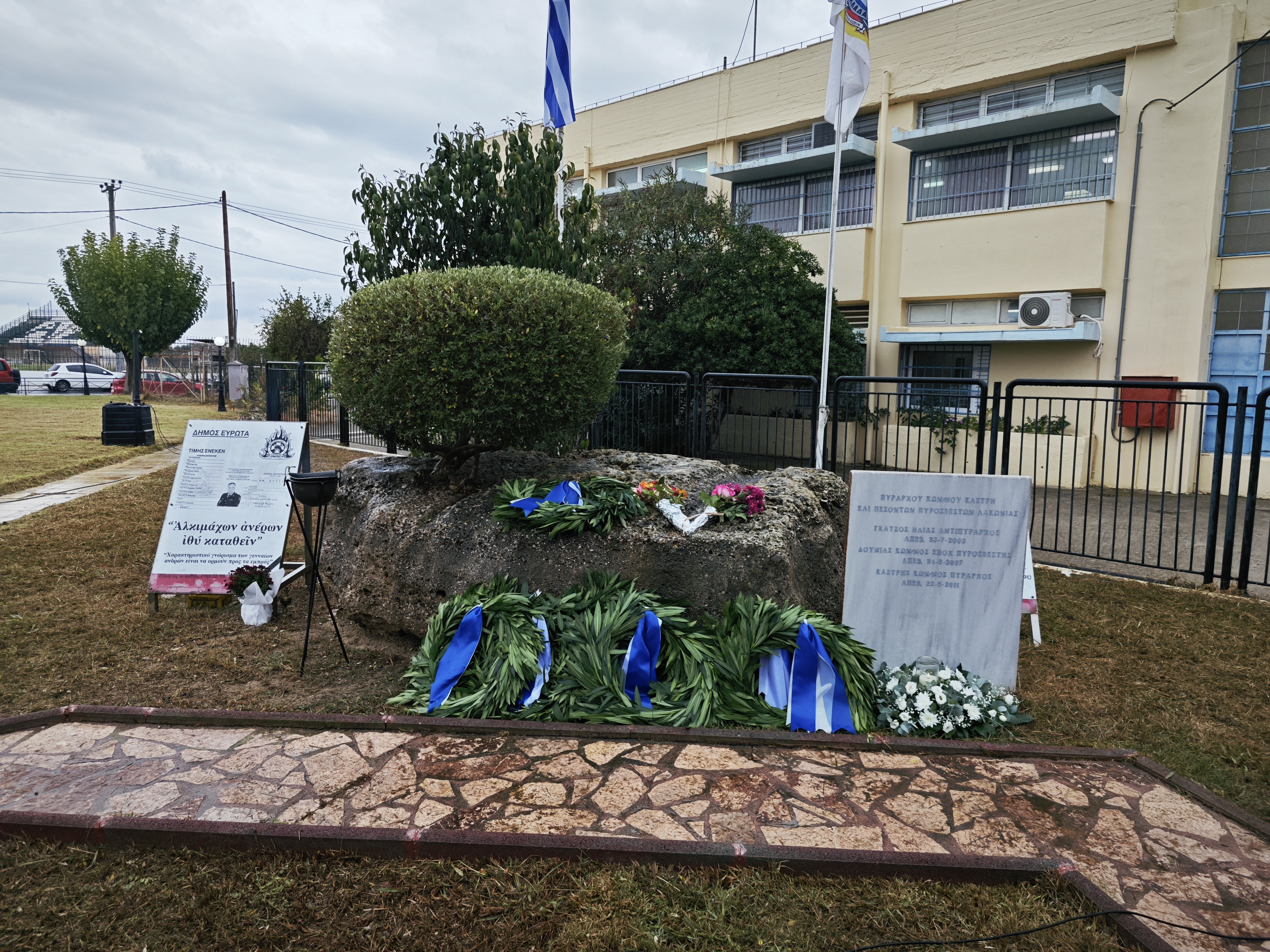 O Δήμος Ευρώτα, όπως κάθε χρόνο την 12η Νοεμβρίου ημέρα μνήμης πεσόντων πυροσβεστών, σε συνεργασία με το Πυροσβεστικό σώμα, τέλεσε επιμνημόσυνη δέηση για να τιμήσει τους πυροσβέστες που έχασαν τη ζωή τους στην εκτέλεση του καθήκοντος, στο Μνημείο Κωνσταντίνου Καστρή, στην έδρα του Δήμου.