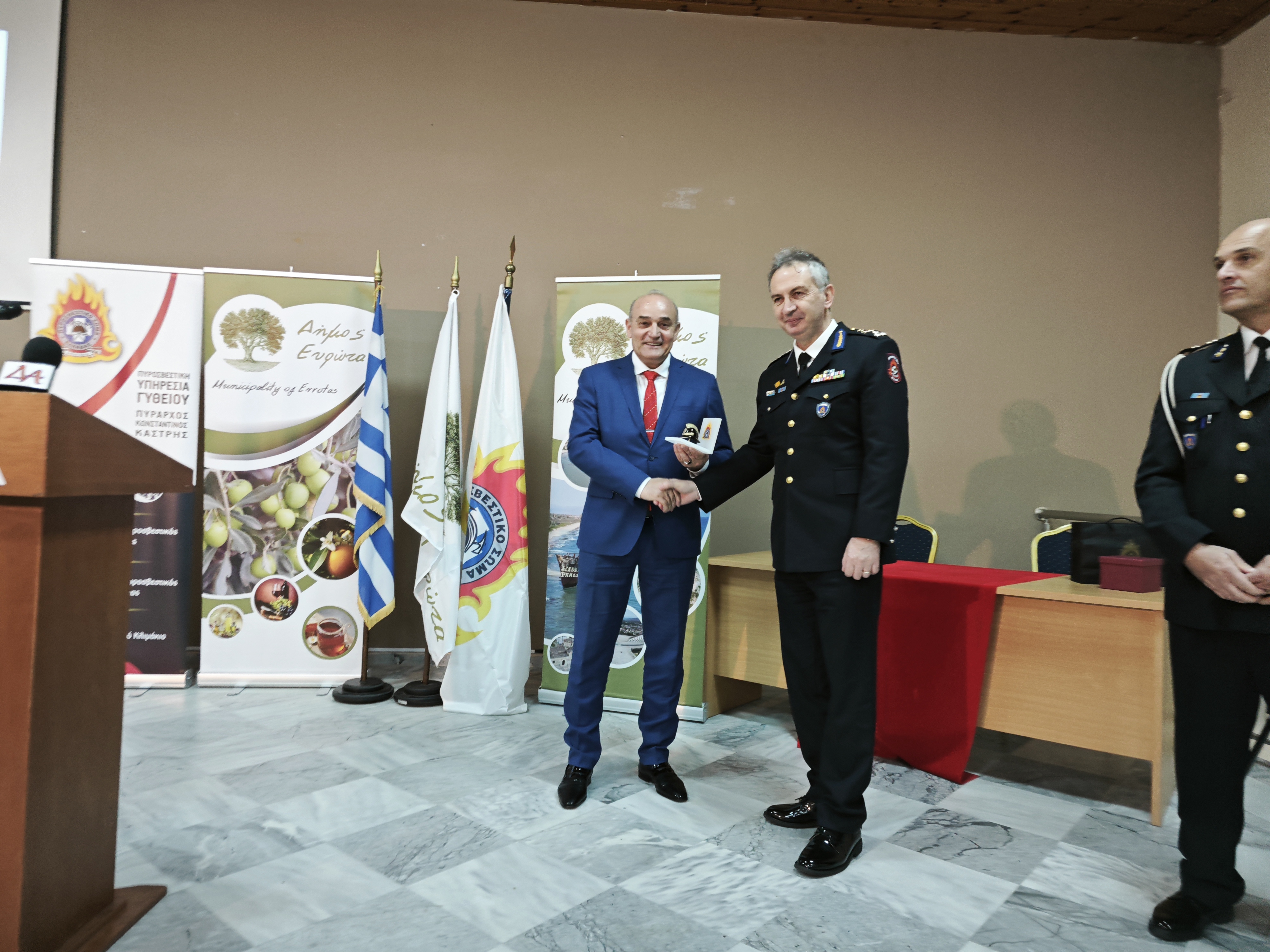 Ο Διοικητής της Πυροσβεστικής Υπηρεσίας Γυθείου και εκ των πρωτεργατών της ίδρυσης του Εθελοντικού Πυροσβεστικού Σταθμού Ευρώτα, Αντιπύραρχος, κ. Κωνσταντίνος Γραφάκος, παρουσίασε ένα σύντομο ιστορικό του Σταθμού, την κοινωνική δράση του, όπως τη συμμετοχή εθελοντών σε αιμοδοσίες ή τη συμβολή τους στη συγκέντρωση αγαθών για πληγέντες συμπολίτες μας, καθώς και την επιτυχή δράση του επί του πεδίου, με άμεσες επεμβάσεις σε σημεία εκδήλωσης πυρκαγιών. Παράλληλα, ο κ. Γραφάκος αναφέρθηκε και στις συνδυασμένες δράσεις της Π.Υ. Γυθείου και του Εθελοντικού Σταθμού στο πλαίσιο της ενημέρωσης των πολιτών για τον εθελοντισμό, την πυροσβεστική παιδεία και την πρόληψη, ως αναγκαία συστατικά για την αντιμετώπιση των ακραίων φαινομένων ως απόρροια και της κλιματικής αλλαγής.