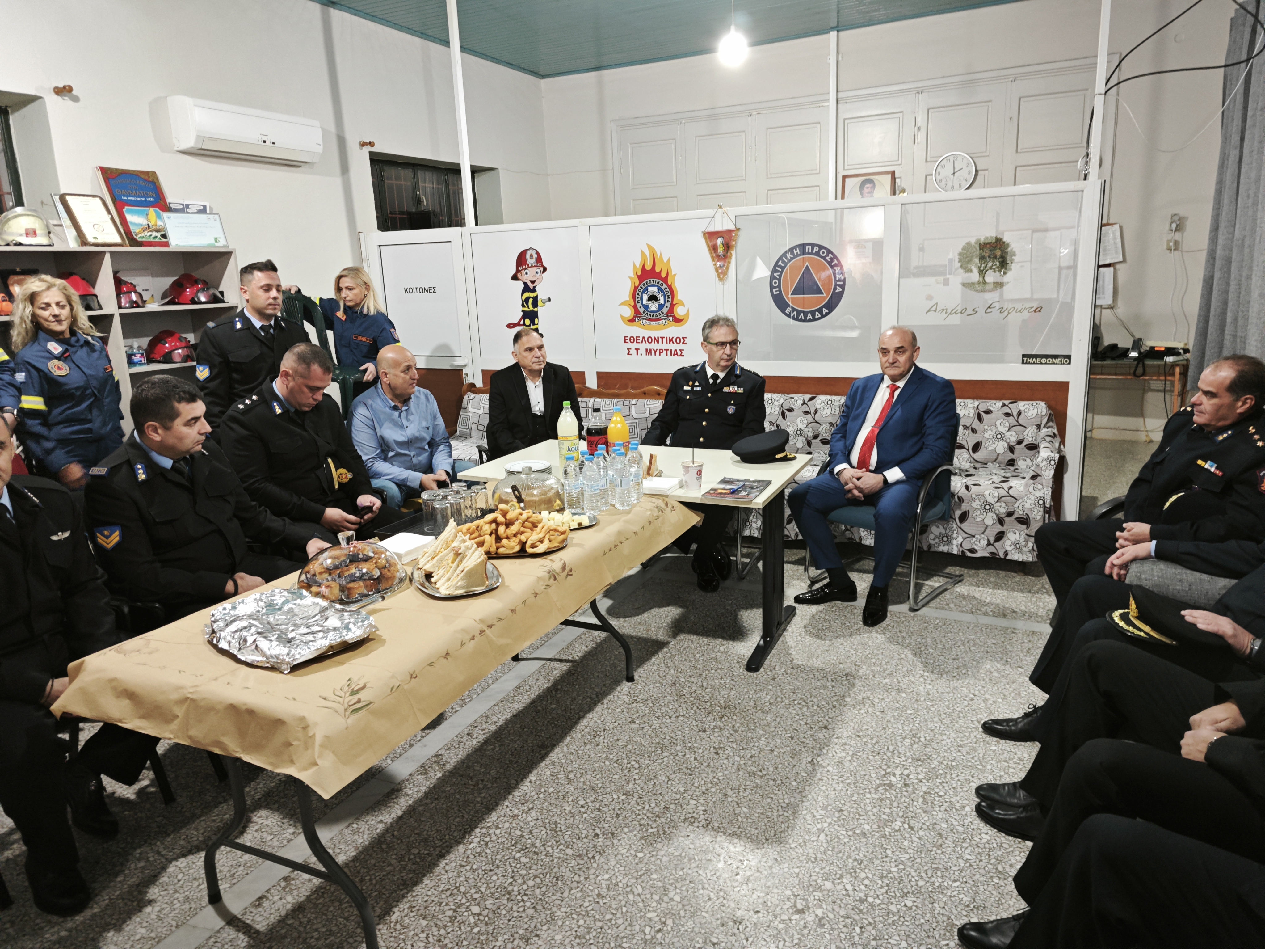 Ο Δήμαρχος Ευρώτα, κ. Δήμος Βέρδος ευχαρίστησε όλους τους εθελοντές, οι οποίοι, όπως είπε, θυσιάζουν τον προσωπικό τους χρόνο για να προσφέρουν κοινωνικό έργο στους συνδημότες τους. Ο Δήμαρχος αναφέρθηκε στην ίδρυση του Εθελοντικού Πυροσβεστικού Σταθμού Ευρώτα, ο οποίος βρίσκεται στην Κοινότητα Μυρτιάς, τονίζοντας ότι το εγχείρημα αυτό προήλθε από το γεγονός ότι καταγράφονταν πολλά συμβάντα στην περιοχή και ο Δήμος Ευρώτα στερούνταν Πυροσβεστικής Υπηρεσίας. Έκανε ιδιαίτερη μνεία στη συμβολή του σημερινού Διοικητή της Π.Υ. Γυθείου, κ. Κωνσταντίνο Γραφάκο και τον τότε Αντιδήμαρχο, κ. Βασίλειο Μπαλαμπάνο, λέγοντας ότι οι τρεις τους προώθησαν και πέτυχαν τη δημιουργία και τη λειτουργία του Εθελοντικού Σταθμού.